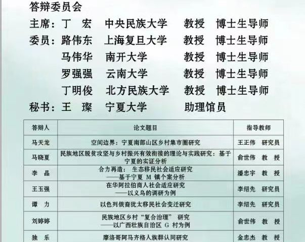 学术交流, 斥候伏行2022年6月20日2022年9月20日 路伟东教授应邀参加宁夏大学博士学位论文答辩 应宁夏大学回族研究院院长梁向明教授邀请,路伟东教授参加宁夏大学2022届“民族社会学”专业博士研究生学位论文答辩,本次答辩共有马天龙、马晓夏、李晶、王玉强、更多内容…路伟东教授应邀参加宁夏大学博士学位论文答辩
