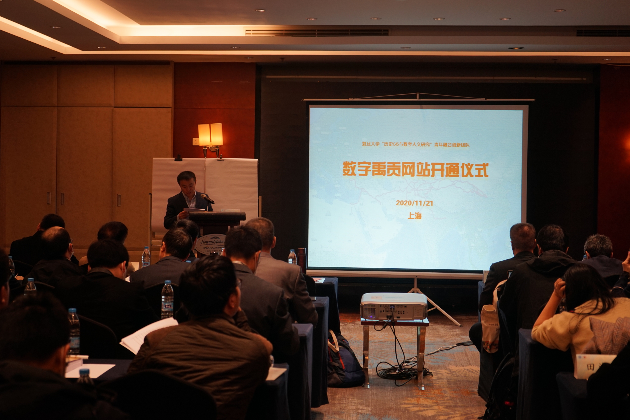 2020年11月21日,复旦大学召开“’丝绸之路’沿线历史人口与区域社会“学术研讨会,作为开幕式议程之一,复旦大学“’历史GIS与数字人文研究’青年融合创新团队负责人”路伟东教授与复旦大学文科科研处副处长罗长远教授、复旦大学史地所副所长杨伟兵教授一起,共同主持了“数字禹贡”网站开通仪式。即日起,数字禹贡网站正式运营。