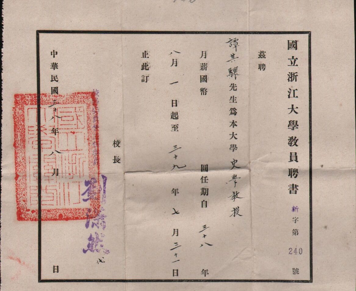 谭其骧生先重要证书和聘书 民国三十八年(1949)八月国立浙江大学教授聘书 1949年8月国立复旦大学者授聘书 1950年8月国立浙江大学教授聘书 1950年8月中央人民政府出版总署聘任地图编刊委员会员会专函 1951年8月复旦大学教授聘书 1951年10月人民出版社《中国历史地图》主编聘书 1980年中国科学院院士终身荣誉章 1980年8月全国人民代表大会代表证 1980年12月复旦大学指导研究生任务书 1980年谭其骧先生当选中国科学院院士证书 中科院颁发谭其骧先生资深院士证书 1981年6月国务院学位学科评议组成员聘书 1982年6月《中华人民共和国地名辞典》学术顾问聘书 1983年4月《中国人名大辞典》编辑委员会顾问聘书 1983年5月复旦大学发执教40周年荣誉证书 1983年度模范集体 上海市人民政府奖状 1984年11月中国魏晋南北朝史学会顾问聘书 1987年1月《辞海》编委、分科主编聘书 1985年12月中国地理学会历史地理专业委员会员会聘书 1988年10中国古都学会顾问聘书 1995年12月《中国历史地图集》获全国高校人文社科成果一等奖 1984年12月中国地理学会从事地理工作五十年荣誉证书 1989年11月中国科学院院士荣誉章 1987年4月中国大百科全书地理学编委、历史地理学主编聘书 1988年10月上海哲学社会科学委员会学术委员聘书 1984年12月《中华人民共和国国家地理集历史地图集》总编辑聘书 1988年10中科院发从事科研工作五十年荣誉证书 1994年7月《长水集》获奖证书 1984年复旦大学研究生教育优秀奖一等奖证书 1985年参加国务院学位委员会第一届学科评议组工作留这 « ‹ of 2 › » 阅读量 57